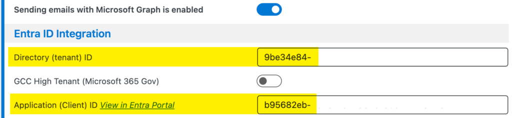 - The Application ID alone is not sufficient. You also need to configure the Directory (Tenant) ID to identify your Microsoft Entra tenant.