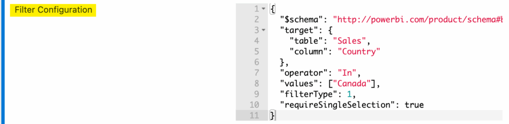 When editing a filter configuration you must convert some enumerated values into number. In the example above you’ll notice that filterType is set to 1. To look up those enumerated values you can use the Power BI models reference. Here you can search for the actual values for filterType only to find that 1 stands for Basic.