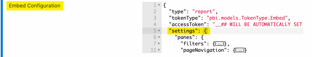 The following steps explain, how you can manually edit the embed configuration and define custom settings for your embedded Power BI item.